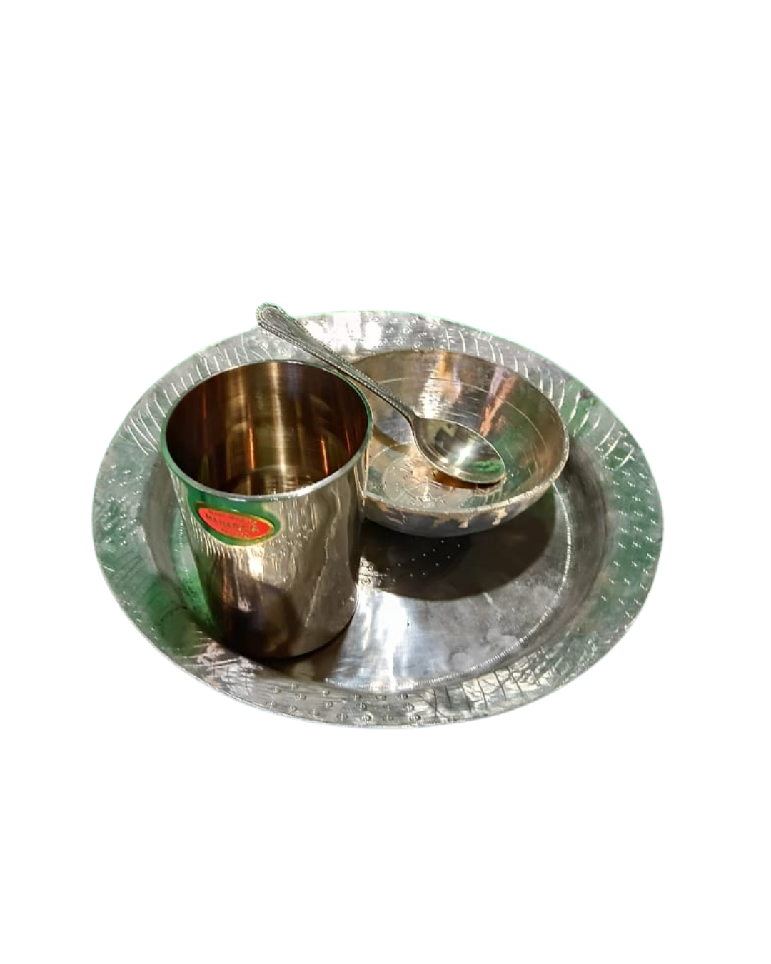 Includes: Kahi (Plate), Bati (Bowl), Glass, Spoon